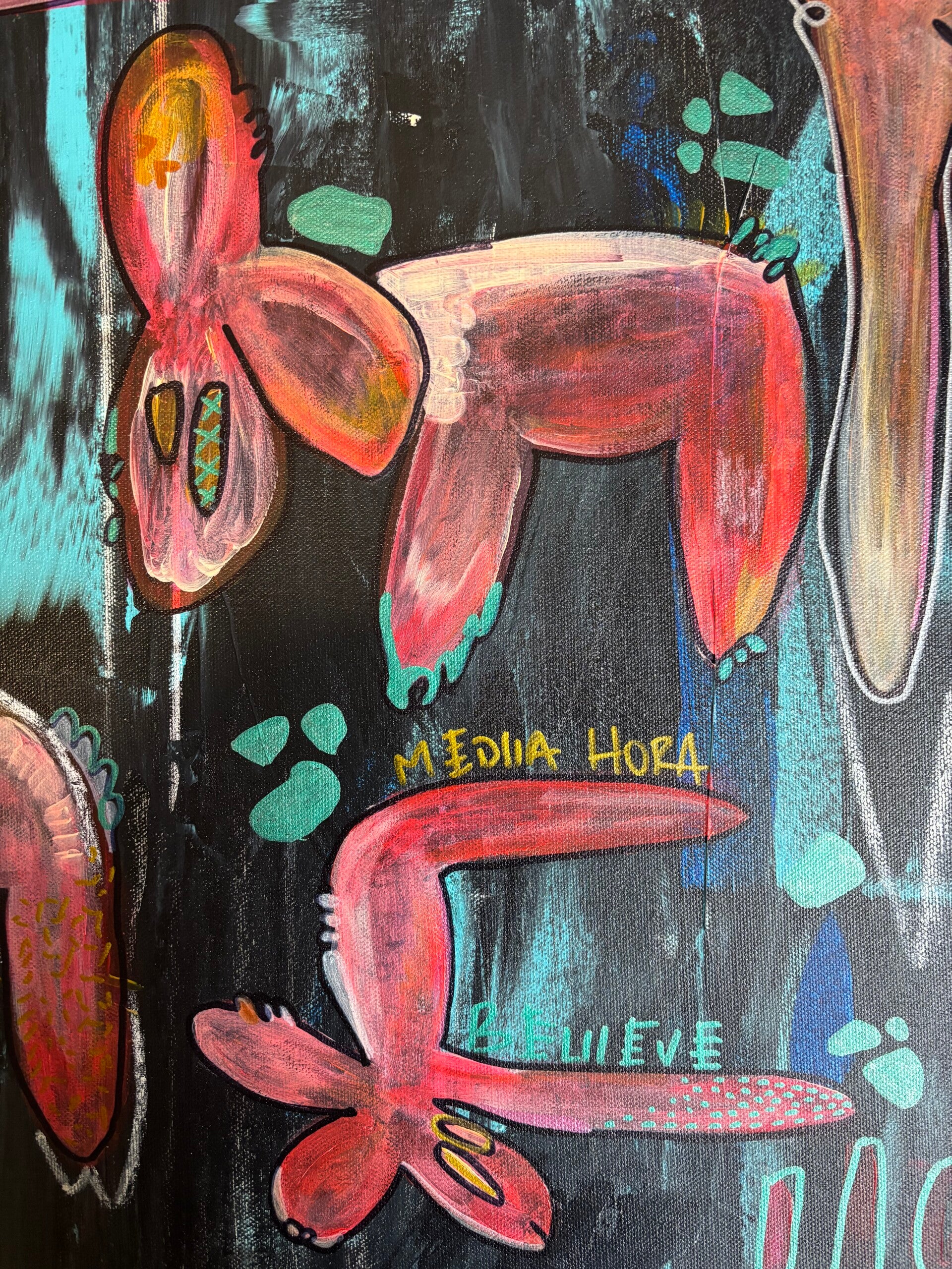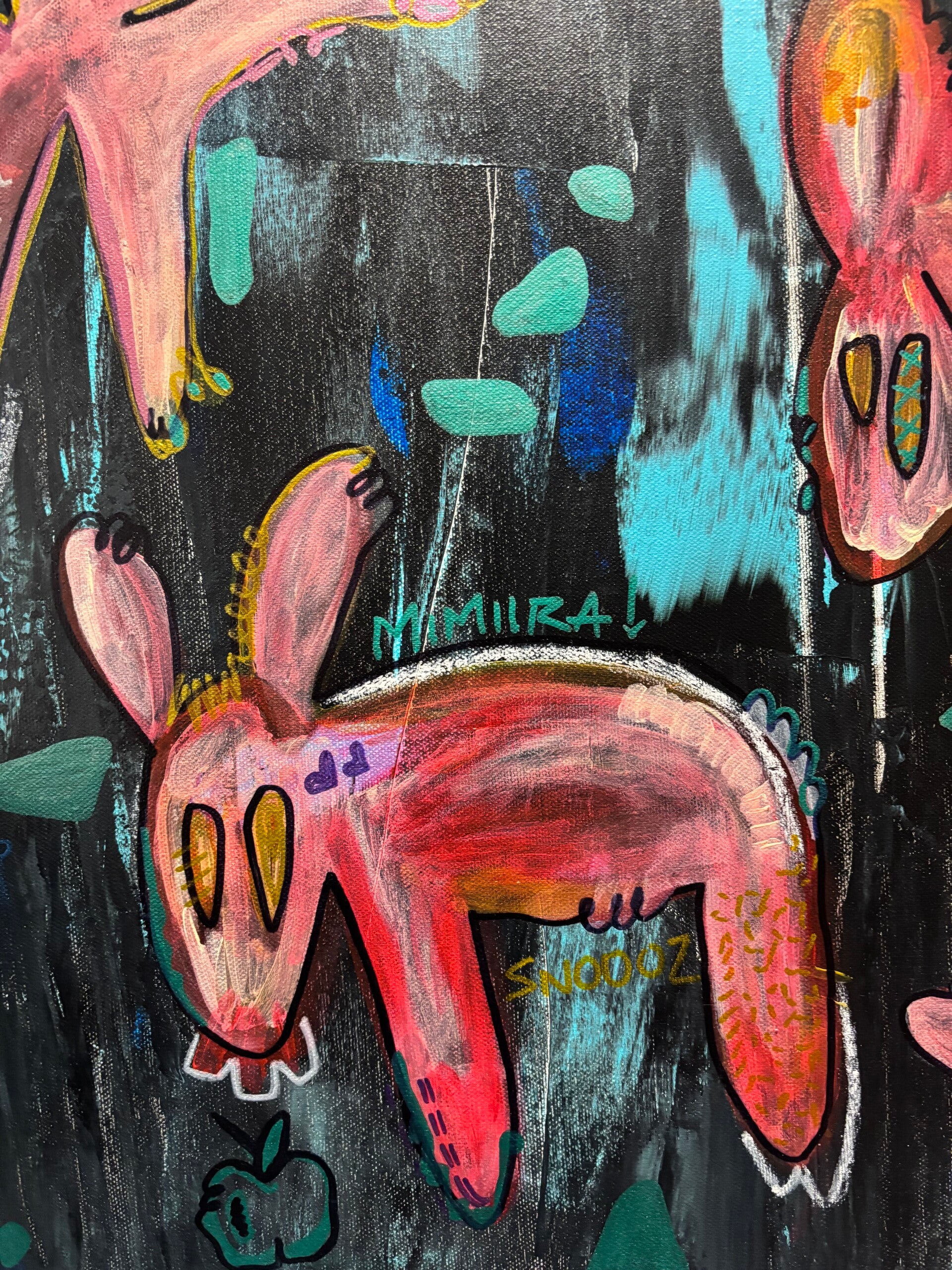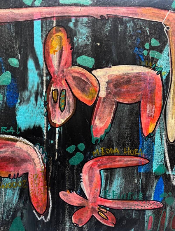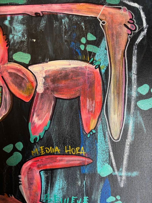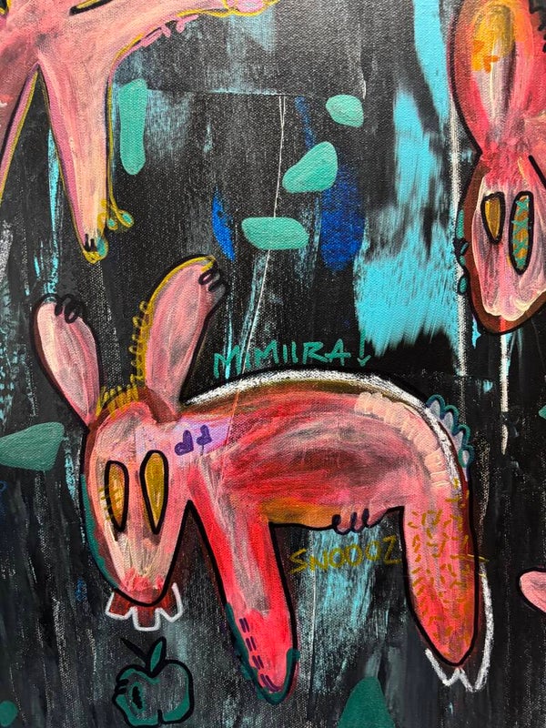 This piece emerges from a quiet moment in nature — an imagined landscape where instinct, tenderness, and presence coexist. The creatures inhabit a dark yet luminous space, suspended between earth and dream.