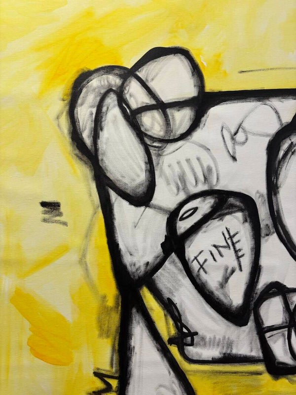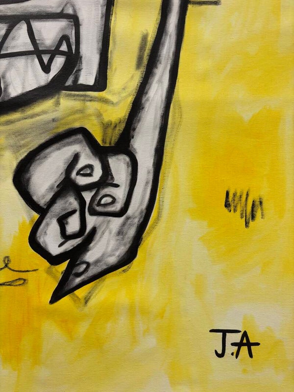 The yellow background functions as a metaphorical sun. Just as sunlight illuminates everything beneath it, the color suggests a force that reveals what lies underneath our performed expressions — the emotions we attempt to hide.