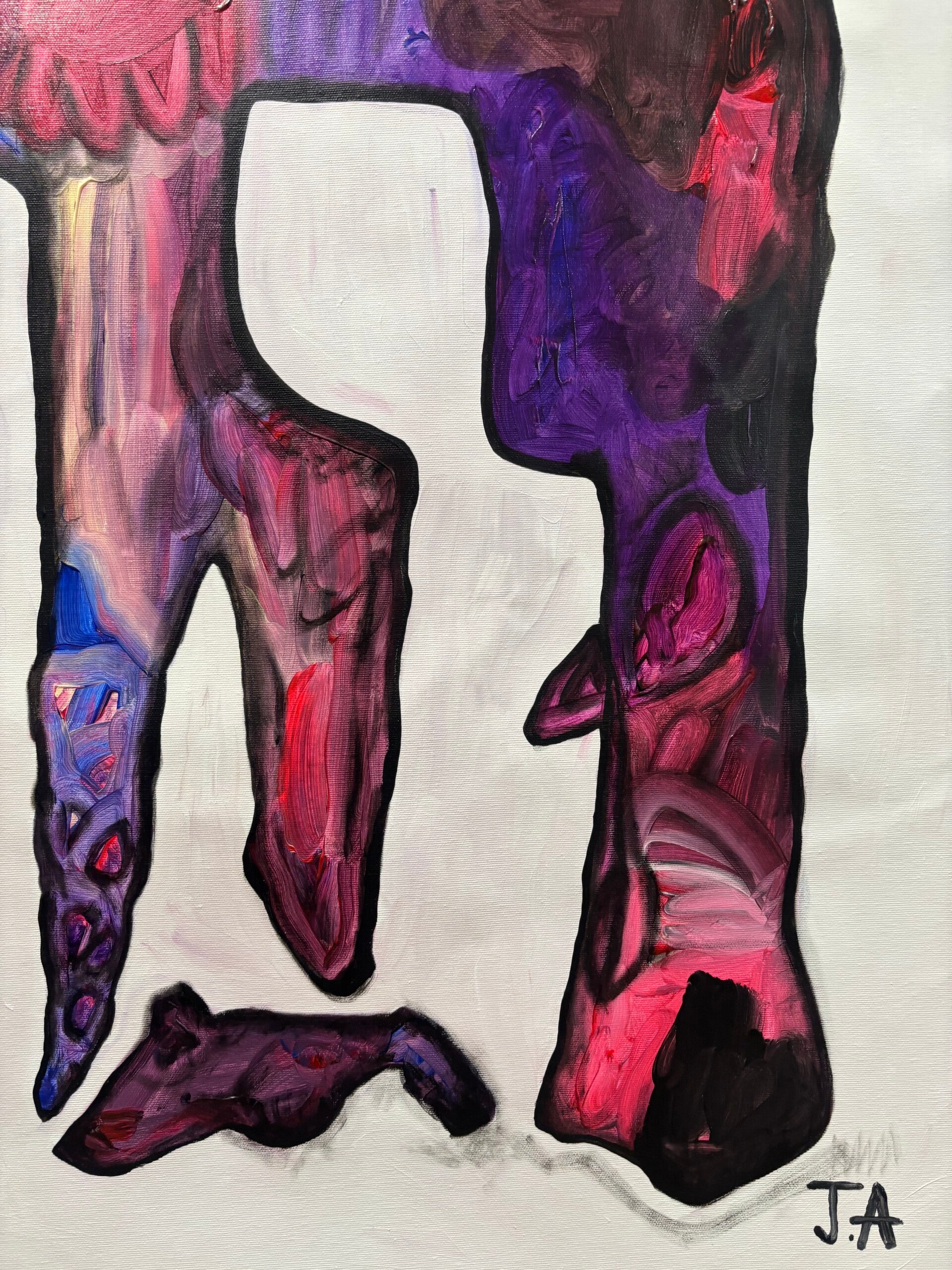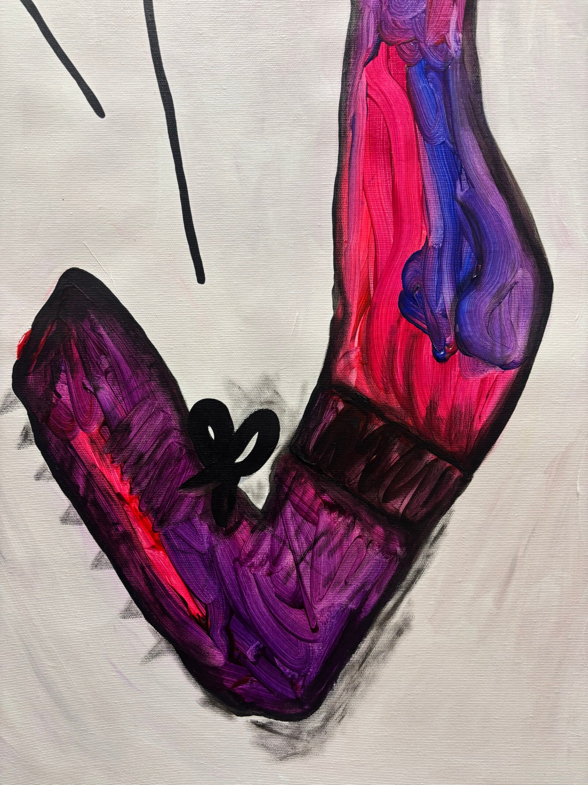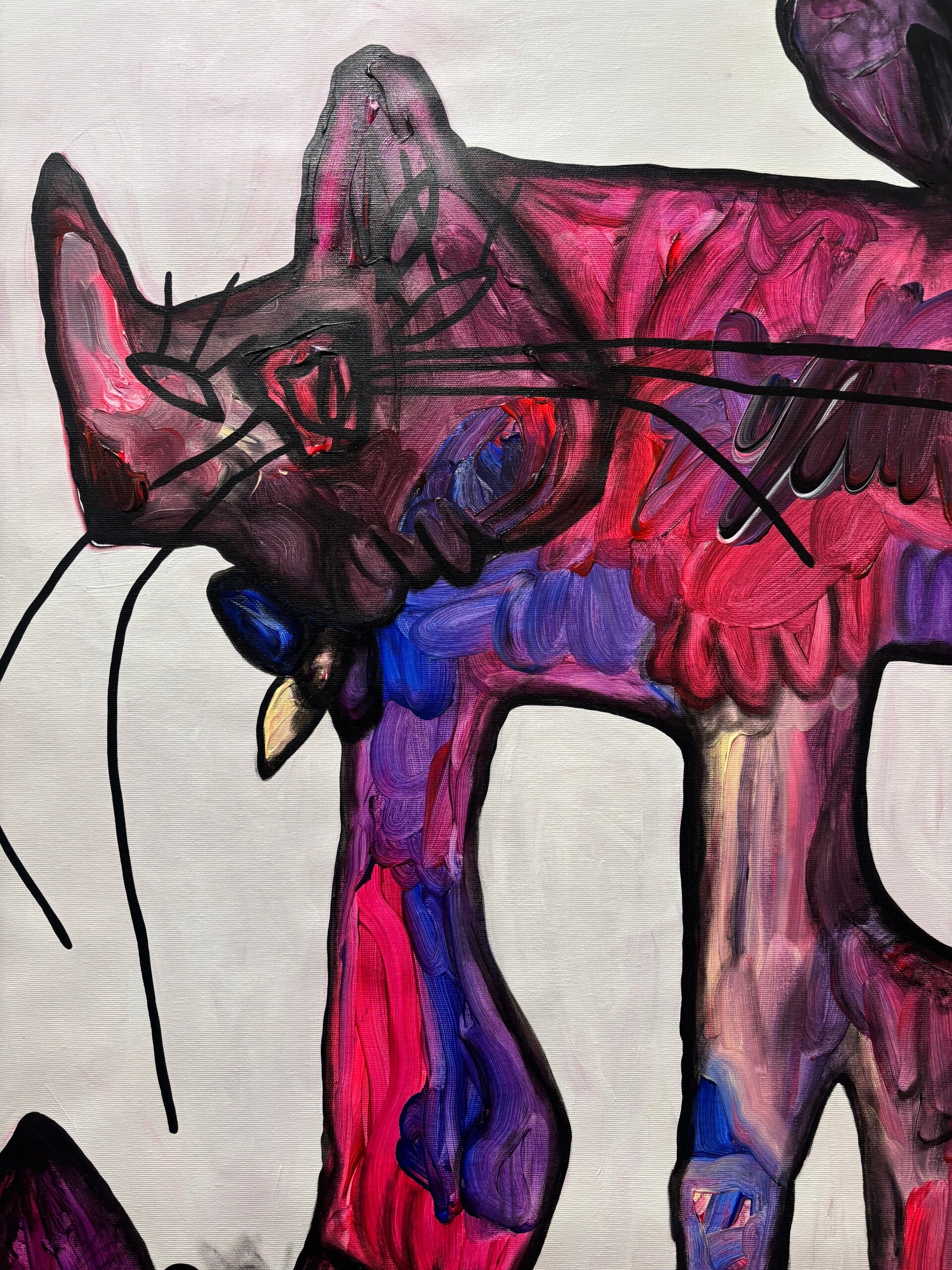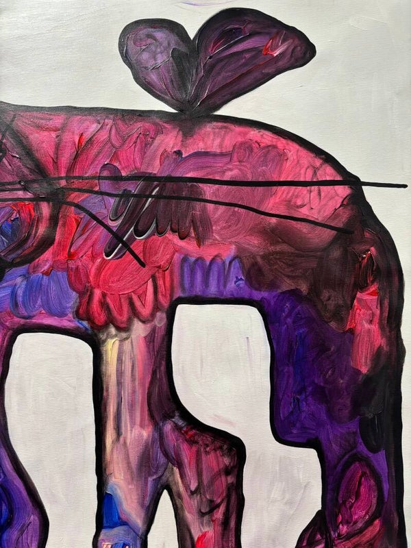 The creature takes the form of a cat, an animal that embodies independence and instinctive presence. Unlike beings that adapt themselves to their surroundings, the cat moves according to an internal rhythm. It follows what it feels rather than what is expected. In this painting, the feline figure becomes a vessel for emotional states, holding layers of color that move through its body like currents of feeling.
